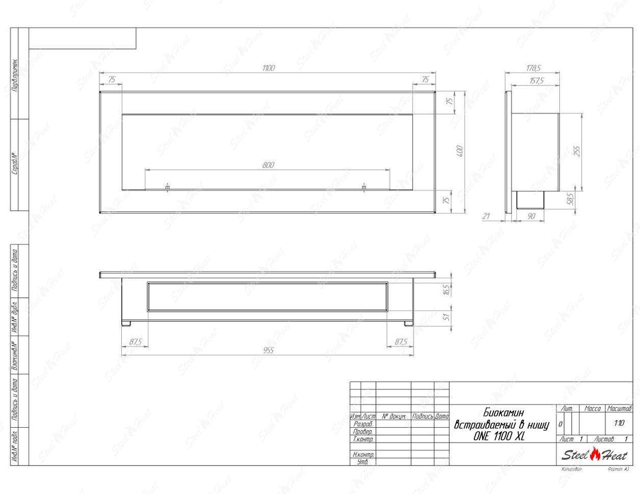 Встраиваемый Биокамин SteelHeat ONE 1100 XL предназначен для встраивания в глухие ниши из гипсокартона, кирпича, пеноблоков, бетона.