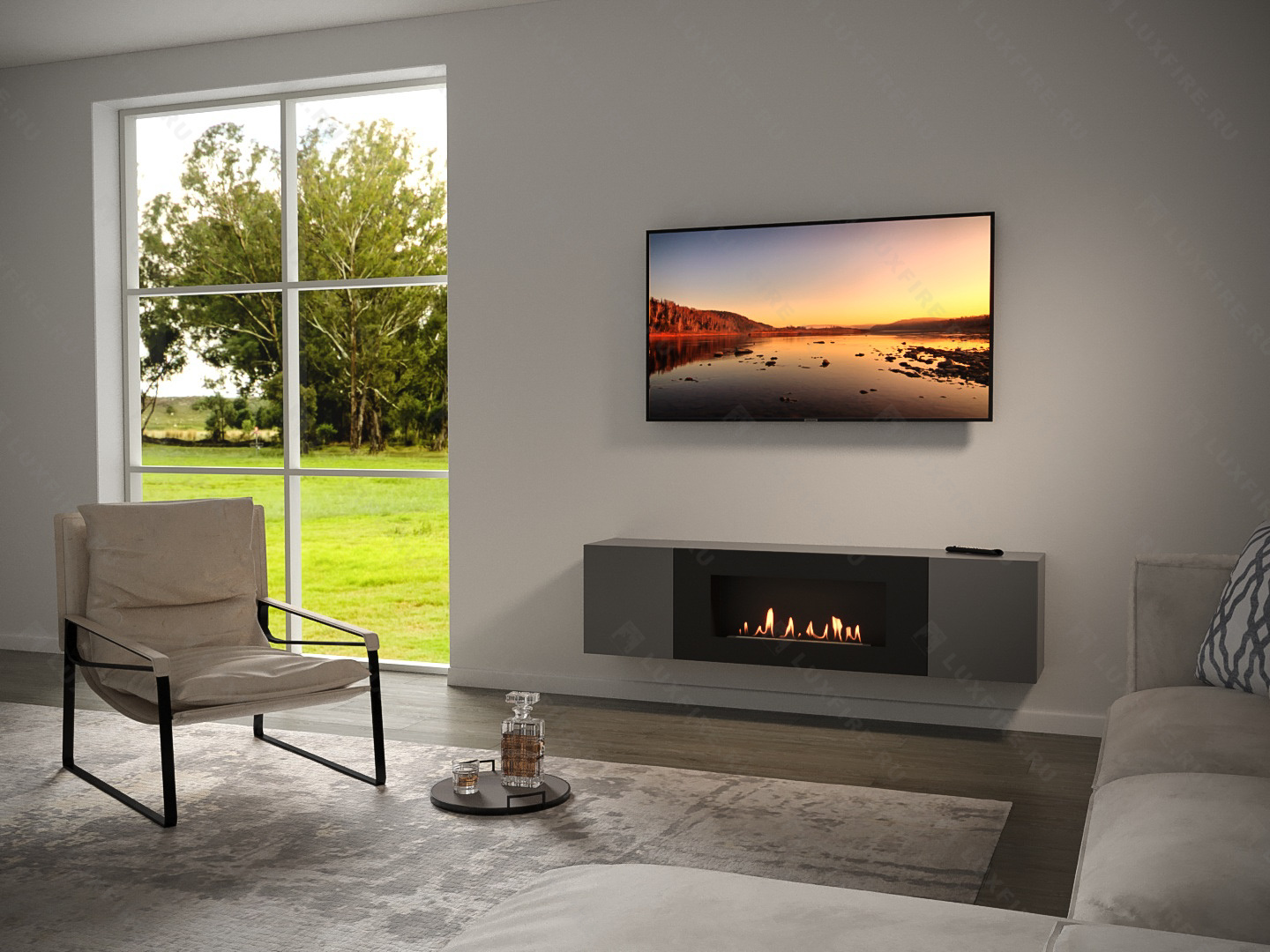 Тумба универсальная Lux Fire "Байкал" 1600, графит, с биокамином 900