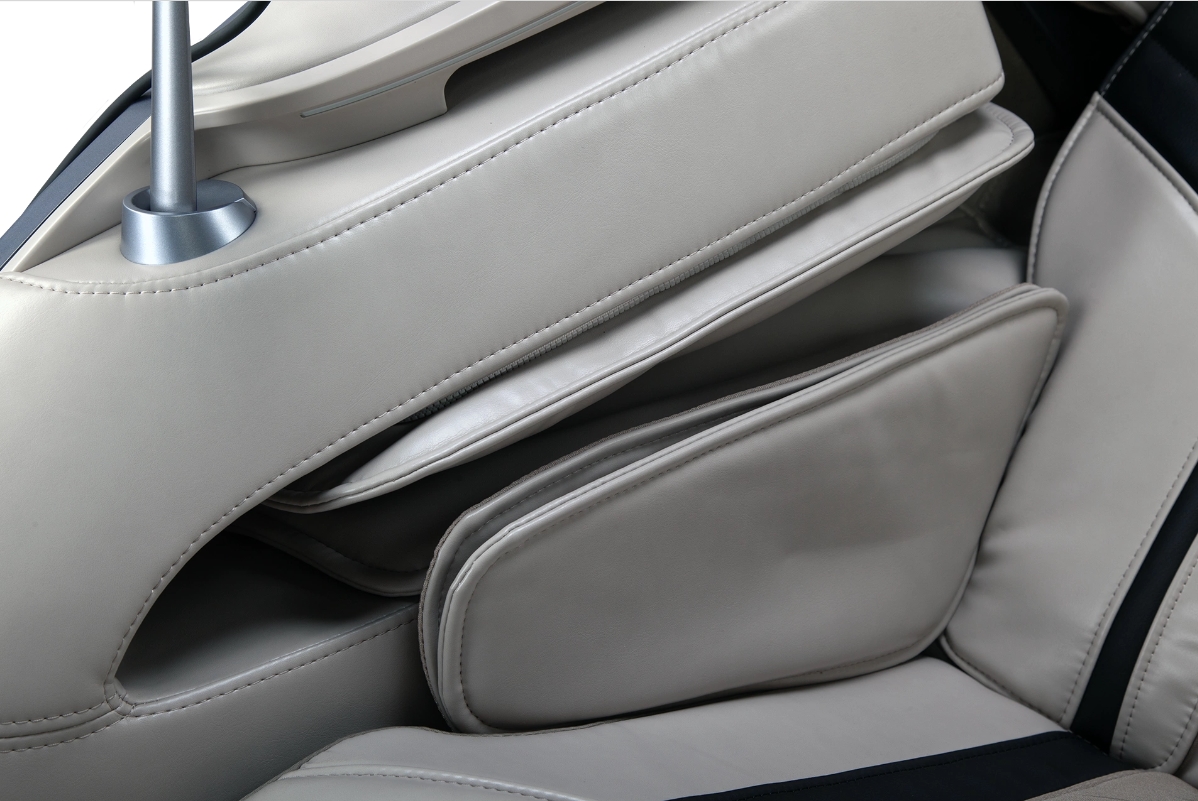 Бедра - осуществляется воздушно-копрессионными подушками, которые бережно разминают бедренные мышцы, способствуя оттоку лимфы и нормализуя кровообращение., Голени - осуществляется воздушно-компрессионными подушками, которые при надувании мягко захватывают голень, разминают и восстанавливают в них нормальное кровообращение, Голова - с помощью наличия воздушно-компрессионных подушек, происходит поглаживающий массаж затылочной части головы., Крестец - ход роликов увеличен, благодаря этому во время сеанса массажа они проходят вдоль копчика и немного ниже, позволяя более эффективно прорабатывать весь позвоночный отдел., Плечи - массаж плеч осуществляется воздушно-компрессионными подушками, которые захватывают и массируют плечевой сустав., Поясница - осуществляется роликами, позволяя снять усталость и напряжение в местах застоя., Руки - осуществляется воздушно-компрессионными подушками. Сжимая в определённой последовательности мышцы рук, позволяя нормализовать лимфоток и восстановить правильный кровоток. В некоторых моделях осуществляется точечный массаж рук благодаря наличию на подушках небольших выступов., Спина - происходит классический массаж спины с помощью роликов, имитирующих движение рук массажиста., Стопы - с помощью воздействия точечного роликово массажа, повышается жизненный тонус и улучшается общее самочувствие пользователя креслом., Шея - массажные ролики деликатно захватывают шейный отдел и с помощью разминающих и поглаживающих движений восстанавливают нормальный кровоток к мозгу. Благодаря чему нормализуется черепно-мозговое давление и снижает накопленную усталость., Ягодицы - массаж ягодиц осуществляется с помощью вибромассажных пластин или роликового массажа (В моделях с увеличенным ходом каретки). Способствует раслаблению мышц ягодиц и бёдер, снимая давление со стороны сидалищного нерва. - |